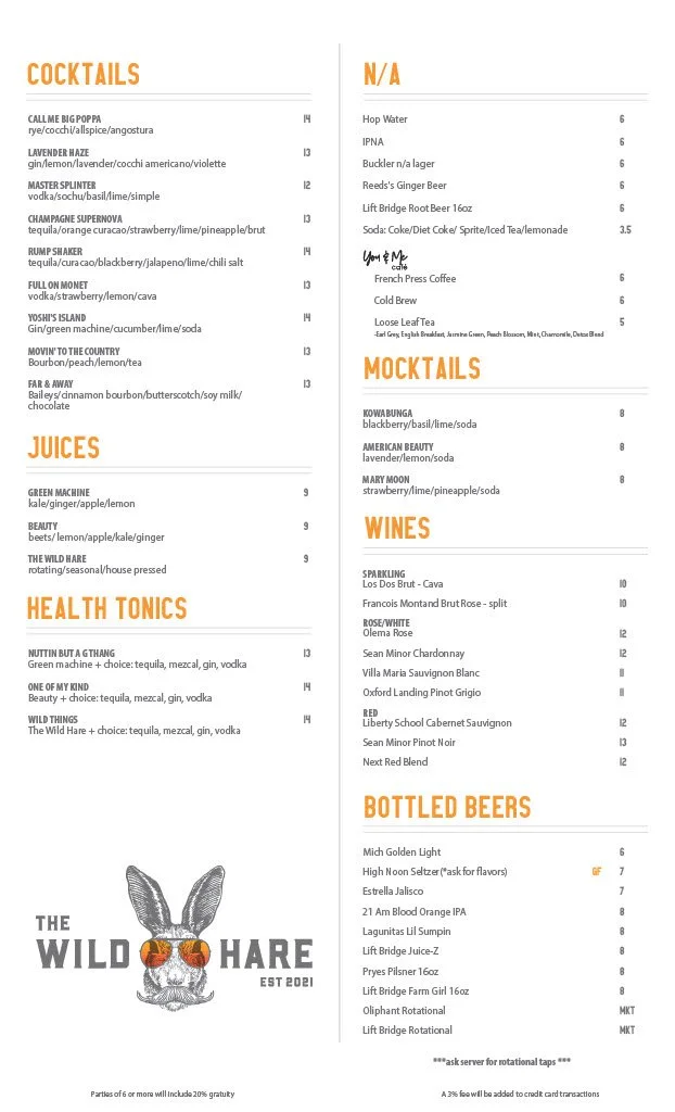 STILLWATER MENU
